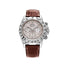 This Rolex Cosmograph Daytona 116519 is crafted in a white gold case measuring 40mm in diameter. The fixed tachymeter engraved bezel surrounds a white mother of pearl dial with 8 diamond set hour markers. The watch comes on a brown leather strap and includes the vintage wooden box.