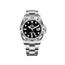 The Rolex Explorer II is designed in a 42mm stainless steel case that features a black dial with luminous arrow-shaped 24-hour hand and hour markers in a Chromalight display. The Explorer II is furnished with a smooth bezel and 24-hour graduations, a date display, and the ability to distinguish day from night. The watch comes on a stainless steel bracelet with a folding clasp.