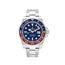 This Rolex GMT-Master II is designed in 40mm 18k white gold and styled on an Oyster bracelet. Complications include dual time zones and 24 hour-hour display. Hour hands move independently from the minute/seconds hands, allowing the wearer to smoothly adjust to new timezones without disrupting the watch's precise timekeeping. The eye-catching red and blue bezel coined the watch with the nickname 'Pepsi,' this piece also sports a matching blue dial.