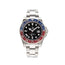 The Rolex GMT Master II is designed in a 40mm 18k white gold case featuring red and blue "Pepsi" 24hr cerachrom on the bidirectional bezel. Its rich black dial comes with white luminous hour markers which elevates this design. This style is finished with an 18ct white gold Oyster bracelet with flat three-piece links and folding clasp.