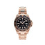 The Rolex GMT Master II 'Root Beer' is designed in a 40mm 18k rose gold case featuring a two-toned cerachrom on the bidirectional bezel. Its black dial comes with white luminous hour markers and Mercedes hands. This style is finished with an 18k rose gold Oyster bracelet with flat three-piece links and folding clasp.