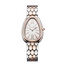 Serpenti Seduttori watch with quartz movement, 33 mm stainless steel case, 18 kt rose gold bezel set with diamonds, 18 kt rose gold crown set with a cabochon-cut pink rubellite, white dial, and 18 kt rose gold and stainless steel bracelet. Water-resistant up to 30 meters.