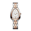 Serpenti Seduttori watch with quartz movement, 33 mm stainless steel case, 18 kt rose gold bezel, 18 kt rose gold crown set with a cabochon-cut pink rubellite, white silver opaline dial, 18 kt rose gold and stainless steel bracelet. Water-resistant up to 30 meters.