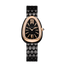 Shining with the timeless yet modern elegance of black, the Serpenti Seduttori watch in stainless steel with black DLC treatment is an irresistible blend of sensuality, mystery and contemporary glamour. With its black lacquered dial, framed by the distinctive drop-shaped watch head, the timepiece boasts an alluring contrast given by the radiant 18 kt rose gold bezel set with brilliant-cut diamonds. The sensual and alluringly flexible bracelet with hexagonal scales creates the perfect encounter between the world of jewelry and watchmaking.