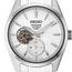 [product_description] Presage Sharp Edged Series. Offering the finest in Japanese mechanical watchmaking, the Presage Collection blends precision technology with superior craftsmanship and design. Celebrating the fresh, clean minimalism of contemporary Japanese art, the coolly angular Sharp Edged Series blends modern culture with classic themes. In bracing contrast to the updated angles of the case and bracelet, this intriguing watch reaches back to the past with a white gradated gloss-finish multi-layer dial patterned with an Asanoha hemp-leaf motif, a symbol of growth and prosperity dating to the Heian Period (794-1185 AD). The hemp-leaf pattern is continued over the open aperture, with its view of the 24-jewel automatic movement, which beats at a frequency of 21,600 vibrations per hour, with an extraordinary power reserve of approximately 72 hours and manual winding capability. With a 24-hour subdial, the dial also features applied markers and crisply sculpted LumiBrite hands, and is topped by a dual-curved sapphire crystal with anti-reflective coating on the inner surface. The mirror finished lugs add brilliance, while enhancing the sophisticated slim profile. Crafted of stainless steel with durable super-hard coating, this exceptional timepiece includes a screwdown see-through caseback and tri-fold push-button release clasp. 10 bar, 100M Water Resistant [/product_description] [short_description] Presage Sharp Edged Series. Offering the finest in Japanese mechanical watchmaking, the Presage Collection blends precision technology with superior craftsmanship and design. Celebrating the fresh, clean minimalism of contemporary Japanese art, the coolly angular Sharp Edged Series blends modern culture with classic themes. In bracing contrast to the updated angles of the case and bracelet, this intriguing watch reaches back to the past with a white gradated gloss-finish multi-layer dial patterned with an Asanoha hemp-leaf motif, a symbol of growth and prosperity dating to the Heian Period (794-1185 AD). [/short_description] [unique_description_1]| Caliber 6R5J ^| 21,600 vibrations per hour ^| 24 jewels ^| Power reserve: approximately 72 hours ^| ^| Case Diameter; 40.2mm ^| Case Thickness; 13.5mm ^| Case Length: 47.4mm ^| Stainless steel bracelet with super-hard coating ^| Water Resistance: 10 bar, 100 meters (330 feet) ^| Sharp Edged Series ^[/unique_description_1] [unique_description_2] | Presage Sharp Edged Series ^ | Contemporary angular case design ^ | Fine mechanical watchmaking from Japan ^ | Automatic with manual winding capability ^ | Patterned gradated white dial with the Sharp Edged Series Asanoha hemp leaf motif and gloss finish ^ | Open aperture incorporating the hemp leaf motif ^ | 24-hour subdial ^ | LumiBrite hands ^ | Screwdown see-through caseback ^ | Tri-fold push button release clasp ^ [/unique_description_2]