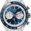 CBN2A1E.BA0643 Tag Heuer TheTag Heuer Carrera CBN2A1E.BA0643 is a sophisticated embodiment of precision and style by Tag Heuer, renowned for its mastery in watchmaking. This men's timepiece exudes an aura of sophistication and functionality, making it a standout addition to any watch collection. The watch features a substantial 44mm silver-tone stainless steel case and matching bracelet, showcasing a harmonious fusion of strength and elegance. The fixed blue ceramic bezel adds a striking touch of color while enhancing the watch's dynamic appeal. The captivating blue dial is adorned with silver-tone hands and index hour markers, exuding a refined and legible appearance. Minute markers encircle the outer rim, emphasizing the watch's attention to detail. Luminescent hands and markers ensure readability in various lighting conditions, enhancing its practicality. An intriguing design choice places the date display at the 12 o'clock position, offering a unique twist on traditional date complications. The chronograph function is displayed through three sub-dials: a 60-second counter, a 30-minute counter, and a 12-hour counter. This intricate arrangement adds depth to the dial and highlights the watch's multifunctional nature. Driving this exceptional timepiece is the Tag Heuer Calibre 02 automatic movement, a testament to precision and engineering excellence. With 33 jewels and 168 parts, this movement beats at a rate of 28,800 vibrations per hour, showcasing impressive accuracy. The movement boasts a commendable power reserve of approximately 80 hours, ensuring uninterrupted timekeeping throughout your endeavors. The scratch-resistant sapphire crystal safeguards the dial, maintaining its pristine appearance. The transparent case back provides a glimpse into the intricate inner workings of the movement, a testament to the craftsmanship that goes into every Tag Heuer timepiece. With water resistance up to 100 meters (330 feet), this watch is ready to accompany you on various adventures, whether on land or near water. The round case shape with a 44mm diameter and 15.27mm thickness ensures a bold and prominent presence on the wrist. The Carrera CBN2A1E.BA0643 is a proud member of the Carrera Series, embodying Tag Heuer's commitment to blending elegance and functionality seamlessly. Its luxurious watch style speaks to those who appreciate both design and performance. Incorporating Tag Heuer's legacy of excellence, the CBN2A1E.BA0643 is a shining example of the brand's dedication to crafting timepieces that are not only aesthetically pleasing but also reliable and precise. For those seeking a luxurious watch that combines classic style with modern technology, this watch stands as a testament to Tag Heuer's craftsmanship and innovation.
