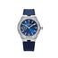 This Vacheron Constantin Overseas watch is crafted in a stainless steel 37mm case adorned with a diamond bezel. The diamond bezel consists of 84 stones formed in the Maltese cross, a design iconically representative of the brand. A blue dial hosts hour, minutes, and small seconds timekeeping functions. While the sapphire crystal case back reveals a glimpse of the movement.