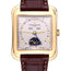 Preowned-47300/000J-9065 Vacheron Constantin. The Vacheron Constantin Historiques Toledo 47300/000J-9065 is a watch that seamlessly combines classic design with intricate complications, offering a touch of timeless elegance. This timepiece features a 35.7 x 43.1 mm 18K Yellow Gold case, exuding an aura of understated luxury. The fixed 18K Yellow Gold bezel adds a subtle touch of sophistication to the watch's design. The silver dial is adorned with gold-tone hands, a blue-tone seconds hand, and Arabic index hour markers, providing both readability and a harmonious color scheme. Minute markers on the inner rim further enhance precision. One of the standout features of this watch is its comprehensive day and date windows located beneath the 12 o'clock position, adding practicality and symmetry to the design. Additionally, a sub-dial displaying moon-phases is located at the 6 o'clock position, adding both functionality and visual appeal to the watch. The alligator brown leather strap, secured with a tang buckle, offers both comfort and style, making it suitable for various occasions. Powering this exquisite piece is an automatic movement, the Caliber 1125, known for its precision and reliability. It provides a power reserve of 40 hours, ensuring consistent timekeeping. Despite its elegant appearance, this timepiece maintains practicality with a water resistance of up to 30 meters (100 feet), making it suitable for daily wear and light water activities. The Vacheron Constantin Historiques Toledo 47300/000J-9065 stands as a testament to the brand's commitment to fine craftsmanship and intricate complications, offering a beautiful blend of aesthetics and functionality for those who appreciate classic design with horological complexity.