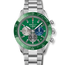 The lacquered green dial and three different-coloured sub-dials. Minute markers around the outer rim. Luminous hour markers. Silvery hour hands with luminous coating. Date window located between the 4 and 5 o'clock positions. This watch has three chronograph sub-dials at 3 ,6 and 9 o'clock.