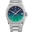 16.9200.670/34.MI001 Zenith. The Zenith Defy Midnight 16.9200.670/34.MI001 is a luxury ladies watch with a stunning design and impressive features. The watch features a 36mm stainless steel case with a fixed bezel set with 44 diamonds, totaling approximately 1.48 carats. The blue to green gradient dial is guilloché, adding texture and depth to the watch face. The luminous silver-tone hands and 11 diamond hour markers provide easy readability in low light conditions. The date window is located at the 3 o'clock position for convenience. The watch is powered by the Zenith Elite caliber 670SK automatic movement, which beats at a frequency of 28,800 vibrations per hour and has 27 jewels. The approximate power reserve of the watch is 50 hours. The stainless steel bracelet features a deployant buckle for a secure fit, and the watch is water-resistant up to 100 meters or 330 feet. Overall, the Zenith Defy Midnight 16.9200.670/34.MI001 is a luxurious and practical ladies watch that is perfect for any occasion.