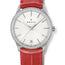 16.3200.670/01.C831 Zenith The Zenith Elite Classic 16.3200.670/01.C831 is an elegant ladies' watch that combines classic design with modern features. The 36mm stainless steel case and diamond bezel provide a sophisticated look that is sure to catch the eye. The silver dial features silver-tone hands and index hour markers, creating a sleek and minimalist aesthetic. The date indication is located at the 6 o'clock position, making it easy to keep track of the date. The watch comes with a beautiful burgundy alligator leather strap that is comfortable to wear and features a protective rubber lining to ensure durability. The stainless steel pin buckle ensures a secure fit on the wrist. The automatic movement of the Zenith Elite Classic 16.3200.670/01.C831 provides reliable and accurate timekeeping. With a power reserve of up to 50 hours, the watch can keep running for two full days without requiring additional winding. Water-resistant up to 50 meters (165 feet), the watch is suitable for swimming, showering, and other water-related activities. However, it is not recommended for diving or other deep-water activities. Overall, the Zenith Elite Classic 16.3200.670/01.C831 is a beautiful and versatile watch that is perfect for everyday wear or special occasions. Its combination of classic design, modern features, and high-quality craftsmanship make it a great choice for anyone looking for a stylish and reliable timepiece.