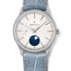 16.3200.692/01.C832 Zenith The Zenith Elite Moonphase 16.3200.692/01.C832 is a ladies' watch with a 36mm stainless steel case and a diamond bezel. The case is designed to be both stylish and durable. The silver dial features steel-tone hands and index hour markers, making it easy to read the time. The watch displays hours and minutes in the center, while the moonphase indication is located at 6 o'clock, allowing the wearer to keep track of the lunar cycles. The small seconds sub-dial is located at 9 o'clock. The watch comes with a blue alligator leather strap that has a protective rubber lining for added durability. The strap is secured with a stainless steel pin buckle, making it easy to wear and secure. The watch is powered by an automatic movement with a power reserve of up to 50 hours, making it convenient for daily wear. It is also water-resistant up to 50 meters (165 feet), which means that it can withstand light splashes of water and can be worn while swimming. Overall, the Zenith Elite Moonphase 16.3200.692/01.C832 is a beautiful and functional ladies' watch that combines elegance with practicality. The blue strap adds a pop of color and personality to the watch, while the diamond bezel adds a touch of luxury.